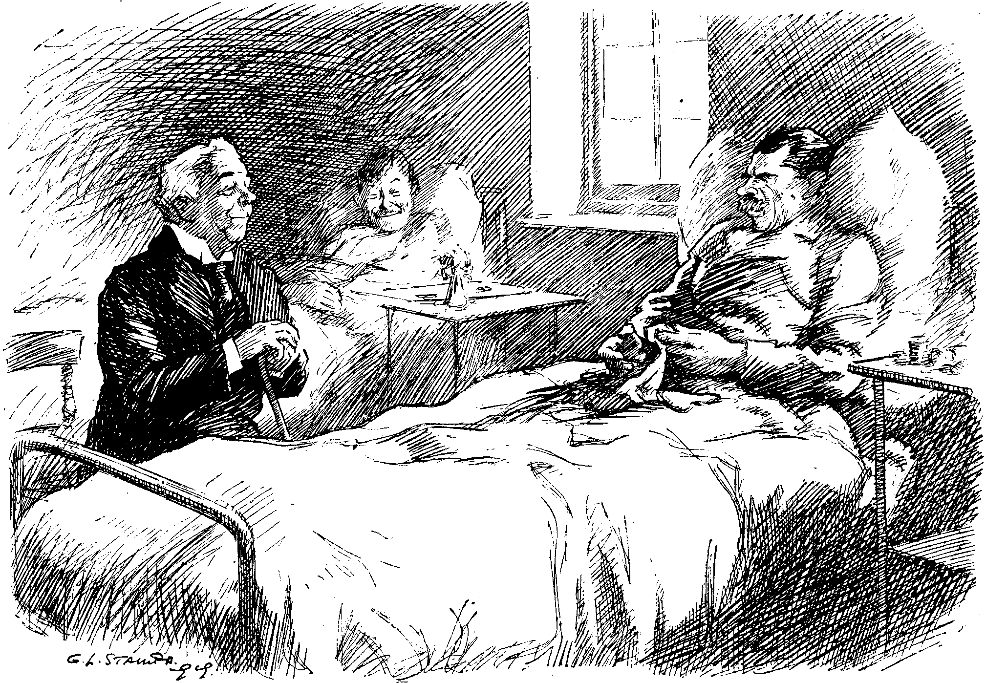 The man looked at me and then at the eager little face below him. "Heavy cold, Sir," he said stolidly. "Always makes 'em a bit hard o' hearing. Poor old Topsy! Want to be left alone, do you?"