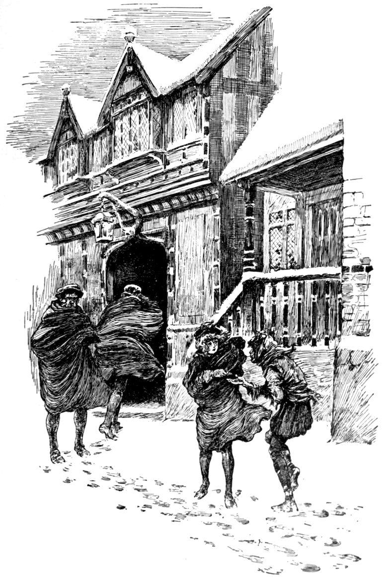 But Nick and Cicely said “Good-night, sirs,” to them all, and bowed; and Master Shakspere himself let them out at the gate, the others shaking Nick by the hand with many kind wishes, and throwing kisses to Cicely until they went out of sight around the chapel corner.