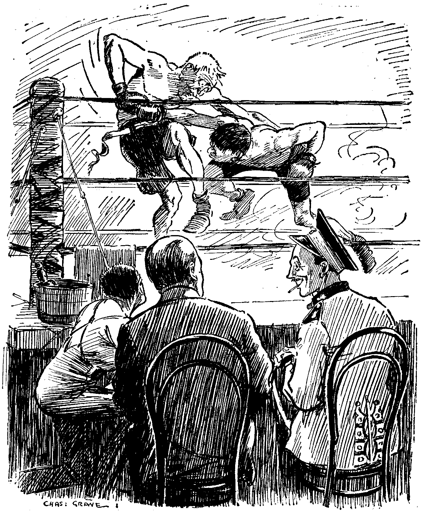 "Lor bless you, Sir, that didn't come for a long time yet. Ye see, Italy shortly afterwards made an alliance with Denmark, and, wishing to do the Danes a good turn, she arranged to sell them the Magnifico Pomposo at cost price—about three millions I think it was. But immediately afterwards the Russo-Chinese war broke out, and the Chinese offered the Danes four millions for the Dannebrog, as they had called her, so by the time the engines were put into her she had been rechristened the Hoang-Ho. But the war never came off: you remember that Mr. ROOSEVELT settled it by fighting a single combat with the Russian champion after he had been appointed President of China; so the Chinese leased the Hoang-Ho to the King of SIAM for four years at a million a year."