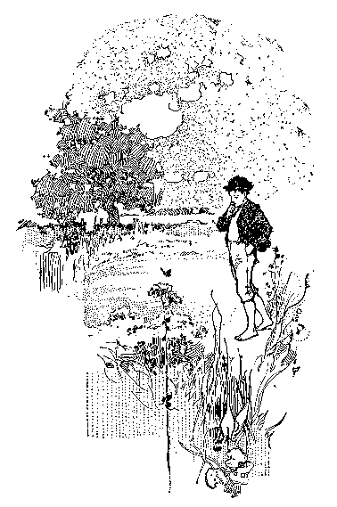 Among the trees they scampered; into hay-stacks they wormed; over barrels and boxes they wiggled; they huddled under the sunflowers and the horse-weeds. It was a royal game, but as the moon rose it merged into pull-away. That game flourished for a while and transformed itself by an almost imperceptible evolution into a series of races down the dusty road. But when the moon's silver had marked itself upon the grass, the boys were lying prone on a hay-cock behind the royal castle. They chattered idly, and the murmur of their talk rose on the just-felt breeze that greets the rising moon, like the ripple of waters. But the chatter was only a seeming. For in truth the boys were absorbing the glory of the moonlight. And the undertones of their being were sounding in unison with the gentle music of the hour. Their souls—fresher from God than are the souls of men—were a-quiver with joy, and their lips babbled to hide their ecstasies. In Boyville it is a shameful thing to flaunt the secrets of the heart. As the night deepened, and the shy stars peeped at the bold moon, the boys let their prattle ebb into silence. Long they lay looking upward—with the impulse in their souls that prompted the eternal question that Adam left unanswered, that David cried in passion across his harp, that the wise men of the world have left locked in mystery—the question of the Whence, the Why, and the Whither.