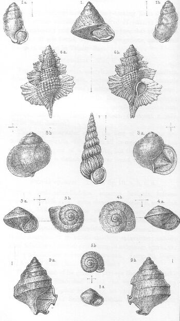 The only known species, C. huxleyi (dedicated to Mr. Huxley, Assistant Surgeon of the Rattlesnake, and now eminent for the admirable anatomical researches among marine invertebrata which he conducted during the voyage) is very minute, being not more than the 1/24th of an inch in diameter. It is translucent and of a brownish-white hue. Its aspect is that of a Turbo in miniature. The whorls are tumid, the spire prominent; the body whorl is belted by two prominent keels, one of which is continued on the whorls of the spire: between, above, and below these keels are transverse membranous raised ridges, which in the central division of the body whorl are curved forwards. This curvature corresponds with the projection of the curious incurved claw-like lobe that proceeds from thc central portion of the lower lip. Towards the base of the aperture is a second and similar but smaller lobe, below which is the short but broad and well-marked canal. The entire lip is marginated by the thickened and reflected peristome. I believe this curious floating shell will throw some light on the true nature and habits of several palaeozoic types. It was taken in the towing net, gregarious, in the sea off Cape Howe, the south-east corner of Australia. Tab. 3 fig. 9. a, b.