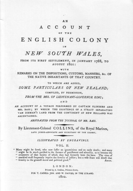 To relieve the mind as much as possible from the contemplation of enormities, and the disgustingly wretched picture which vice must ever exhibit, I have not only interspersed a few notices of rare and curious objects in Natural History peculiar to the Australian regions; but have also inserted the two voyages which were made in the little sloop Norfolk, by Captain Flinders and Mr. Bass, in the order of time in which they occurred, instead of placing them in an Appendix.