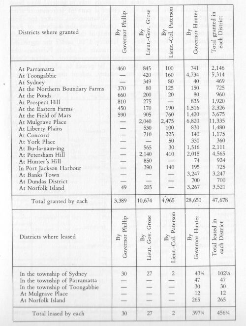 The following is a statement of the ground granted and leased to individuals by the different persons who were thereto authorised, from the 22nd of February 1792, the date of the first, to the 25th of September 1800, the date of the last grant.