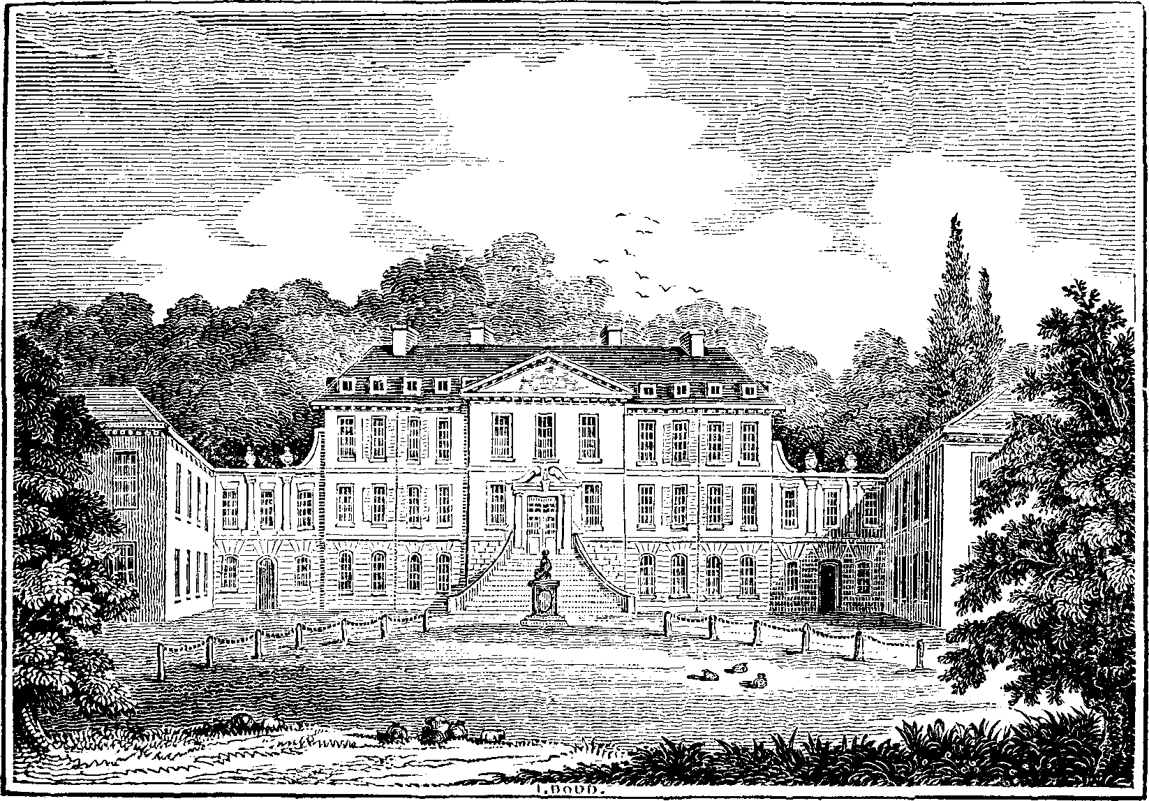 The pleasure ground at the back of the house, commands a pleasing, extensive view; beyond this is the lime walk, which is certainly one of the finest in England.—It is upwards of a quarter of a mile in length, the trees in some parts, finely arching; and may be pronounced, upon the whole, superior to any walk in Oxford or Cambridge.