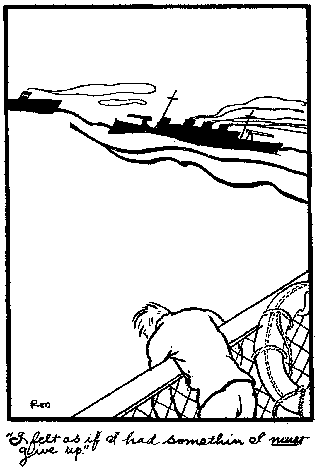 The game we played comin over would have been a good trainin fer a prize fiter. We tumbled round so we looked like we was shadow boxin. "Snappy brand of weather" pipes one of these sailor guys. He was rite, I never remember givin a better imitation of a whip snapper; and the wind, Julie dere, the wind which spends its time round the Flatiron and Woolworth Buildings, are as the poets say "gentle zephers" to that which sweeps across the English channel when a man sized storm is on; it listens like a cross between the moan of a dyin giastacutus and a subway express behind time under the East River.