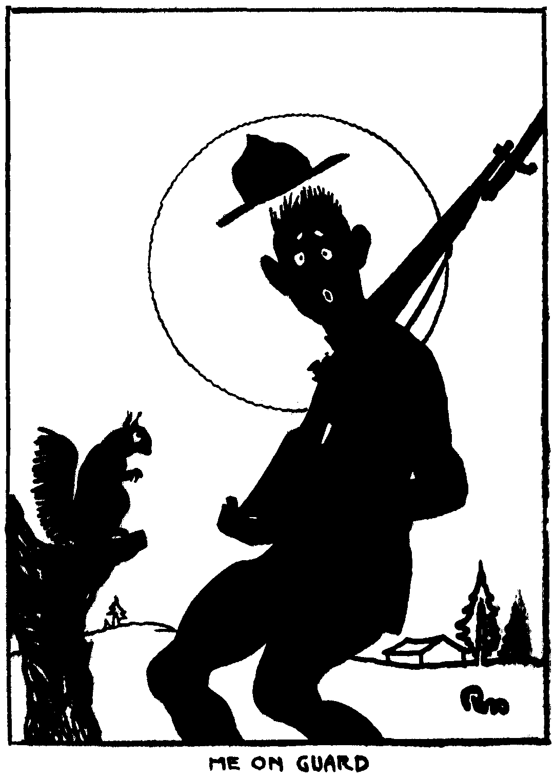 Skinny spent last night in the guard house. In trying to get back in camp after taps he runs plum into a sentry who said "Halt, who goes there?" and Skinny told him "Oh never mind, I only have been here a week and you wouldn't know me ennyhow." He told me today that he didn't wanna be a kernel as there wuzn't much chance fer advancement. I think I told you Julie in one of my letters how stingy this bird Skinny is. Last week we got a three day ferlow and beat it up to the big burg to see the sites. Goin into one of the big hotels, I said to the clerk "What are your rates?" "Five shillings up to 10," he said. Skinny called me to one side an' whispered "Ask him how much it will be up to half-past eight."