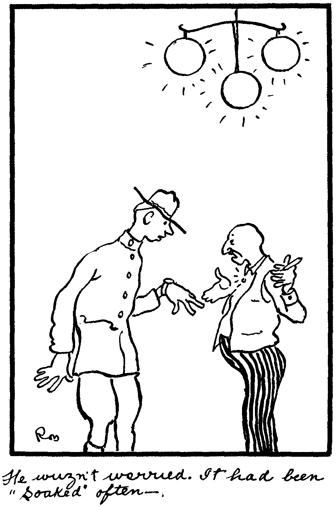 P.S. Tomorrow night, Skinny wants me to go to the Opera with him. I'm not goin—cause I always sleep better at home. I'd rather here a soubrette dolled up in a costume that would barely pass the bord of sensers sing a song like "Mother don't bother with the rolls, father's coming with a bun."
