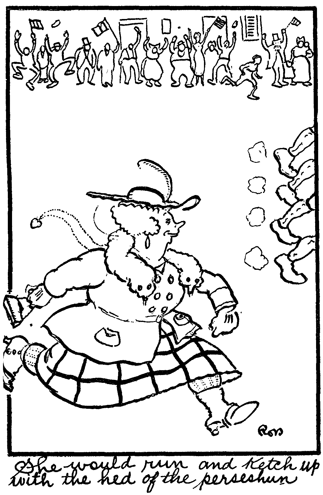 There shure is a bunch of widows over here, Both grass and sod. I say little brighteyes, do you think it possible fer a guy to get hay fever from a grass widow? Ennyhow Skinny got some kind uv fever when he was chummin round with these female comfort kits, and if they don't lose his trail, I can see visions of a certain (what the dickens is that French word for fat—oh yes, embumpoint), lady in Hoboken, N.J.U.S.A., lookin fer a new affinity. In other words, unless the signs is misleading, Skinny is gonna lose his liberty by gettin married, and its the opinion of your "'Lil Brighteyes" that the speech of P. Henry of Va. on "Give me Liberty or give me deth" was made, more because he was married than because he was patriotic; and all the married men, I'm told Julie, are chirpin the same wheeze. Of course with you derie, its different. I don't believe you would accuse a feller of keepin another woman when his pay envelope is a nickle shy on Sat. night.