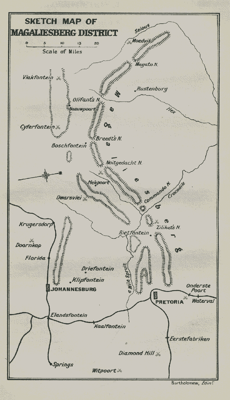 But not only were the necessary preliminary successes deferred far beyond the expected time of their accomplishment—Bloemfontein was not occupied until five months, nor Pretoria until eight months had rolled by since that October dawn when the Boers crossed the frontier into Natal—but the prospect of the end of {18} the War soon began to recede into the perspective of infinity: and even now, after an interval of some years since the peace of Vereeniging, when, like the proportions of some huge edifice which can be truly comprehended only by the observer who views it from a distance, the various incidents and phases of the War begin to assume their relative importance, the difficulty of discovering some guiding principle which shall reconcile the Great Boer War with other wars is as great as ever.