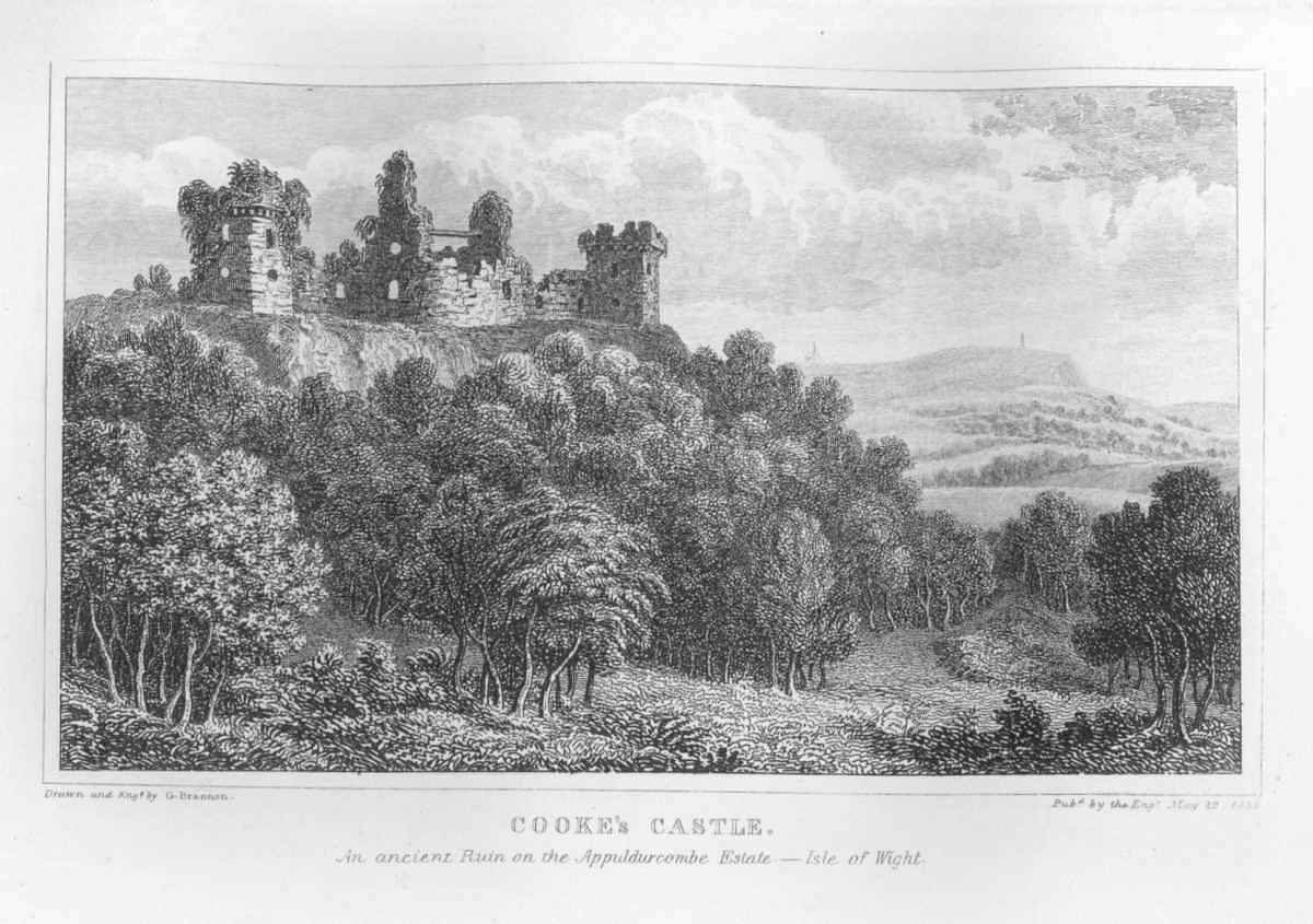 The high antiquity of this beautiful ruin, which occupies the crown of a hill only one mile westward of Newport, renders it an object of the most pleasing interest with all classes of visitors to the Isle of Wight; and it is the only local specimen of ancient fortification deserving a stranger's notice. It is known to have existed for at least fourteen centuries, having in that long period been subjected of course to many mutations. The Saxon chronicles mention it as a place of strength and importance in the year 530, when Cerdic subdued the island; and it was subsequently rendered almost impregnable, according to the mode of fortification which prevailed among the Normans, by William Fitz-Osborne, to whom the island was given by the Conqueror. And in the reign of queen Elizabeth, it received the most substantial repairs and ample additions; when the outer trenches and bastions were formed upon the plan of those of Antwerp—circumscribing about 20 acres.