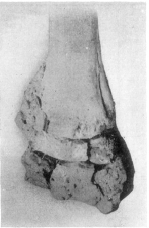 Where a vulnerant body penetrates all structures and invades the interior of the joint capsule the result is that a more or less active disturbance is incited. The introduction of a sterile instrument into a joint cavity, under strict asepsis, where a perfect technic is executed, does not cause perceptible manifestation of the injury, if the opening so made is small—such as a suitable exploratory trocar makes. But a puncture made in a similar manner and with the same instrument without due regard to asepsis is likely to cause an infectious synovitis and arthritis usually follows.