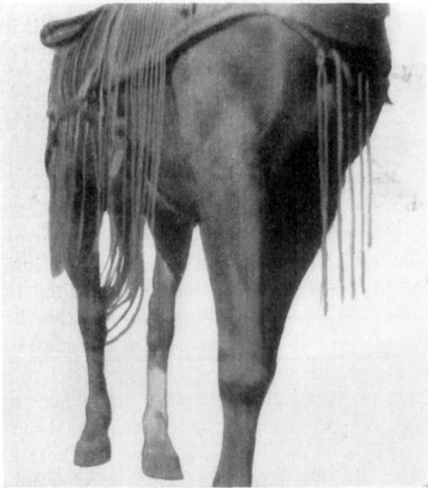 Small puncture wounds in the region of the elbow are often met with. These may be inflicted when horses lie down upon sharp stumps of vegetation or shoe-calk injuries may be the means of introducing contagium, and an infectious inflammation results. Abscess formation, the result of strangles or other infection in the prescapular glands, may be observed at times. Following castration, the inguinal lymph glands may become involved in an infectious inflammation and locomotion is impeded to a marked degree. Horses running at pasture sometimes become injured by trampling upon pieces of wood, causing one end of these or of various implements to become embedded in the soft earth and the other end to enter at the inguinal region and even penetrate the tissues to and through the skin and fascia just below the perineal region.