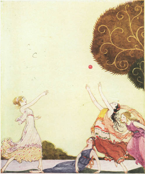 Then the minstrel sang of Peleus, the King of Phthia, and of his marriage to the river nymph, Thetis. All the gods and goddesses came to their wedding feast, Only one of the immortals was not invited—Eris, who is Discord. She came, however. At the games that followed the wedding feast she threw a golden apple amongst the guests, and on the apple was written "For the fairest."