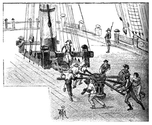 Anque era tiempo de paz, y nuestro capitán, D. Miguel de Zapiaín, parecía no tener maldito recelo, yo, que soy perro viejo en la mar, llamé a Débora y le dije que el tiempo me olía a pólvora... Bueno: cuando las fragatas inglesas estuvieron cerca, el general mandó hacer zafarrancho; la Fama iba delante, y al poco rato nos encontramos a tiro de pistola de una de las inglesas por barlovento.