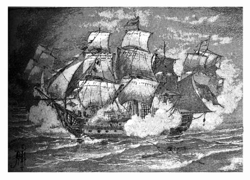 —Pues la causa de este desastre—dijo Don Alonso, que gustaba de interesar a su mujer en tan dramáticos sucesos—, fue la siguiente. Los ingleses, validos de la obscuridad de la noche, dispusieron que el navío Soberbio, el más ligero de los que traían, apagara sus luces y se colocara entre nuestros dos hermosos barcos. Así lo hizo: disparó sus dos andanadas, puso su aparejo en facha con mucha presteza, orzando al mismo tiempo para librarse de la contestación. El Real Carlos y el San Hermenegildo, viéndose atacados inesperadamente, hicieron fuego; pero se estuvieron batiendo el uno contra el otro, hasta que cerca del amanecer y estando a punto de abordarse, se reconocieron y ocurrió lo que tan detalladamente te ha contado Marcial.