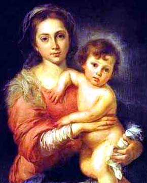 A century later, the Spanish school occasionally reverted to the same style of [32]treatment. A pair of notable pictures are the Madonna of Bethlehem, by Alonzo Cano, and the Madonna of the Napkin, by Murillo. Both are in Seville, the latter in the museum, the former still hanging in its original place in the cathedral.