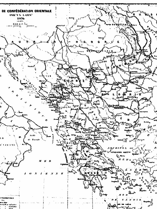 Notre carte géographique indique les modifications que nous proposons d'apporter à la situation actuelle de la péninsule balkanique. Nous n'avons pas cherché à donner une carte plus ou moins complète de ces régions. Notre but est simplement d'aider à la compréhension des passages topographiques contenus dans le texte de notre travail et de montrer la configuration générale de la Confédération, ainsi que certaines lignes de chemin de fer qui l'intéresseraient au premier chef.