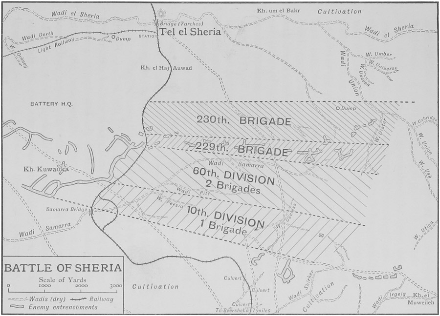 A squadron (Major de Pree) and the bombing squad under Mr A.C. Smith, in conjunction with a squadron of 2nd Lovat Scouts, carried out the raid on the Dere on the night of the 17th/18th October. It was a complete success—all the Turks holding the barrier being killed by the bombing party, and about sixty or seventy yards of new trench being dug the same night. This little exploit was the subject of congratulations from both the Divisional and Corps Commanders, Major-General W. Peyton and Major-General Sir Julian Byng. Mr Smith got the M.C., and [20]Lance-Sergeant J. Valentine and Private W. Roger the D.C.M. for that night’s work.