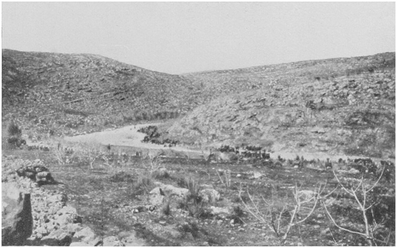 We had hoped the relief would have been cancelled, but not so, and at 5 P.M. we started off for the front line. The Turks evidently anticipated something of the sort, and their rifle fire soon forced us to take to the communication trenches. North Lane was not too bad. There was 18 inches of water, but the bottom was gravelly and the going not too bad. Where this trench struck the old support line we found guides awaiting us who took us [24]past Willow Tree Well through the most awful trenches-too narrow for a heavily ladened man, greasy and slippery, and full of holes which took us up to the waist in water. Some idea of the going may be gathered from the fact that the journey of less than two miles took upwards of five hours to accomplish. And then our troubles weren’t over. The firebays we found crammed with the infantry we were relieving—a helpless, hopeless mob—and it wasn’t till midnight that we had the place to ourselves.