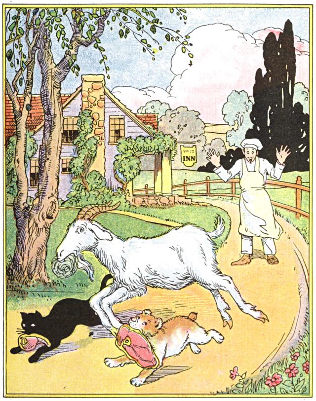 "Gee! Those two goats and that dog and cat had nerve to face that beast," said one of the men. "I should like to own them for pets."