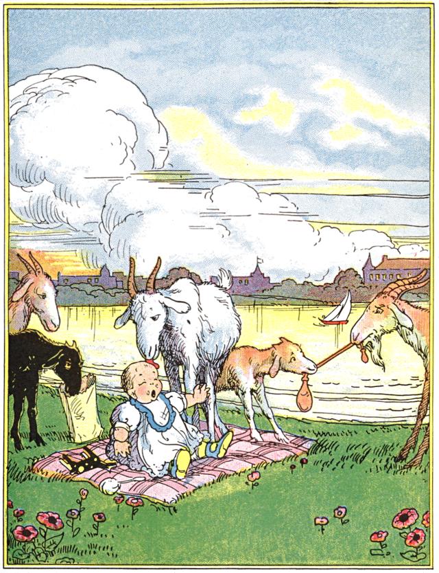 145"Oh, mamma, get us out for we are afraid of that big, horrid black goat over there with the great horns. He said if we did not stop calling for you, he would hook us over the moon with his big horn."
