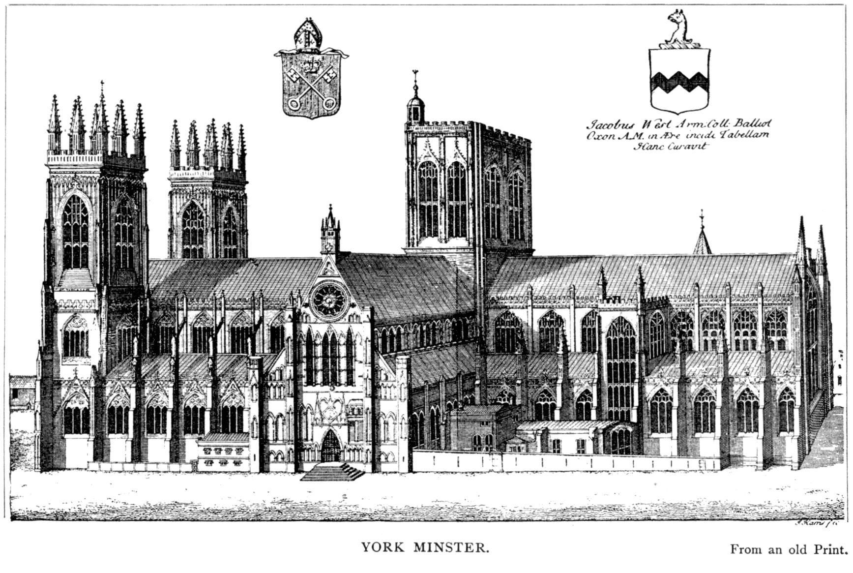 I regret that I have been unable to agree with several of the theories of that most enthusiastic and diligent writer, Mr John Browne, or even to discuss them as I should have liked; but his books must always be of great value to every one interested in the history of York. I am also indebted to Canon Raine's excellent works and compilations; to Mr Winston for his remarks on the glass in the Minster; and to Professor Freeman for his interesting criticisms of the fabric generally.