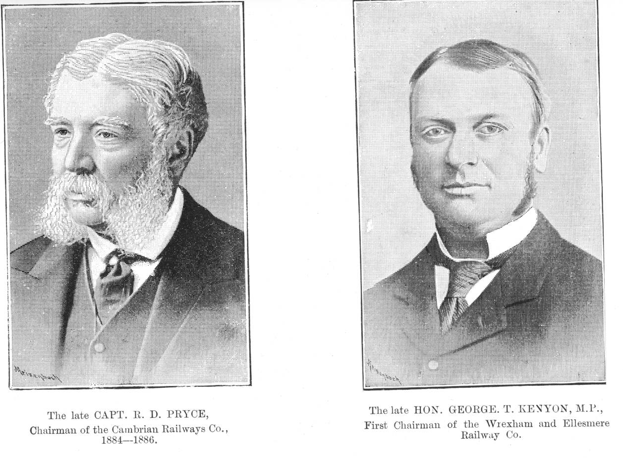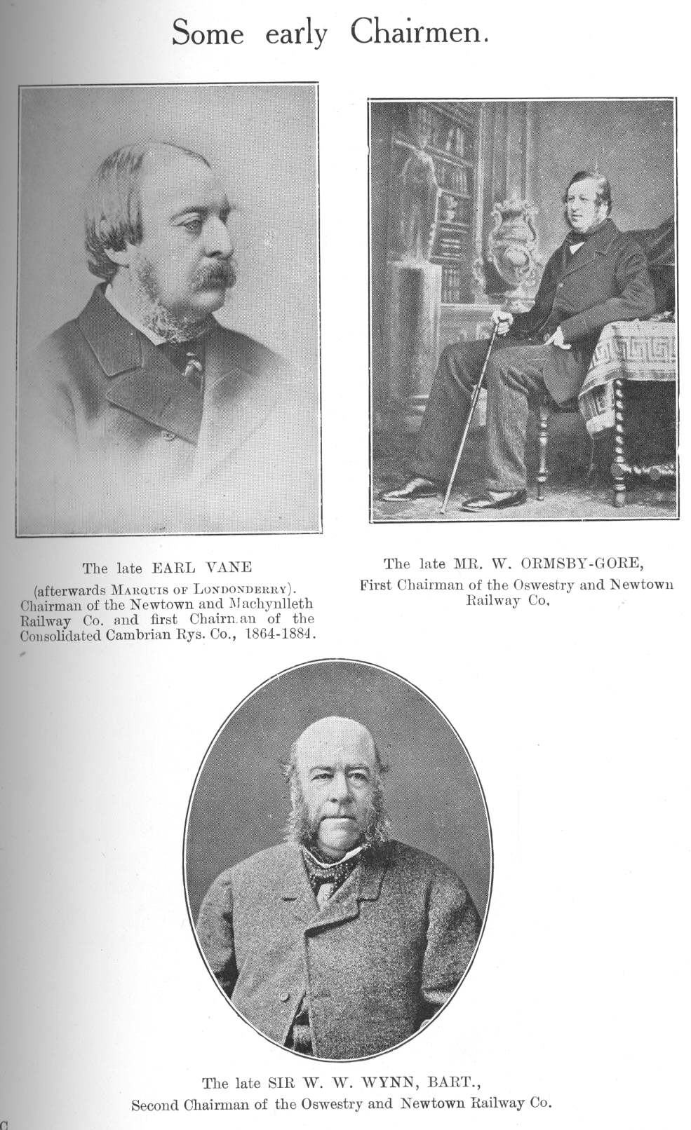 [54] The Board given in “Bradshaw’s Shareholders’ Guide” for 1860 is Earl Vane (Chairman); Sir W. W. Wynn (Vice-Chairman); Mr. Robert Davies Pryce, Cyfronydd, Montgomeryshire, and Mr. John Foulkes, Aberdovey, with Mr. David Howell, secretary, Messrs R. and B. Piercy, engineers, and Messrs. Howell and Morgan, Machynlleth, solicitors.
