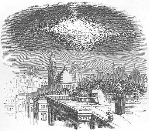 And now, what is it which one suddenly sees, and, after gazing at it for a while, points out to another, and he to a third? As each hears, they look eagerly up to the hill, which rises high above their town, until they gather into a knot; and then, as one and another are added to their company, grow into almost a crowd. Still it is in the same quarter that all eyes are fixed; their water-vessels are set idly down, as if they could p. 151not think of them. Those which were set under the fountain have been quite full this long time, but no one stooped to remove them; and the water has been running over their brimming sides, while its liquid silver flew all round in a shower of sparkling drops. But no one thinks of them. What is it which so chains all eyes and fixes the attention of all?