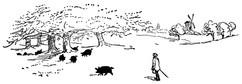 Was a fat pig smiling in a ditch, an’ that, too, they left behind.