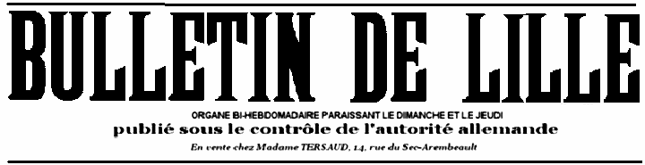 Par ordre de l'autorité allemande, l'estaminet du Nº 63, rue Masséna, tenu par Mme Regnia-Yvonne Lamoureux, est fermé du 28 juin 1916 au 9 août 1916, parce que, contrairement à la proclamation, on y a reçu des soldats allemands.