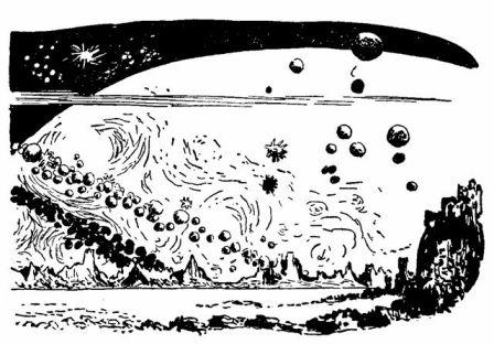 "Up ninety degrees! Full starboard thrust!" roared Coxine into the intercom. "Hurry, you space crawlers! We've got to get out of here!"