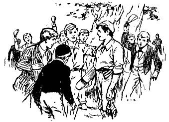 “Poor old Tom Mercer,” I cried, when a hand from the back knocked my cap over my eyes, and a familiar voice shouted,—