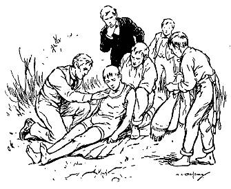“You, Polly,” he said as he worked, “go down to the house and see Sir Orkus. Tell him all about it, and ask him to send help, and some one off for the surgeon. One of the young gents’ll go with you, I dessay.”