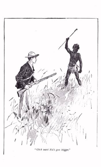 He raised the piece with both hands by the barrel, and swung it back as if to get force for a blow. But, boy as he was, Nic sprang at him.