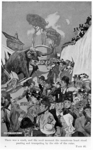 The two lads glanced across the fields towards the orchard where the elephant had eaten his fill of apples, and, seeing nobody near, they both broke bounds by swinging their legs over the palings and dropping on the other side by the fat little man.