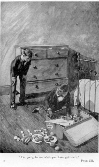 “And don’t you look at me like that,” continued Slegge, who was delighted to find a large audience gathering round him to listen while he gave one of the new boys a good setting down, “or you may find that, after I have done with you, you won’t be fit to show your ugly mug in the row of grinning boobies staring over the wall at a twopenny-halfpenny wild-beast show.”