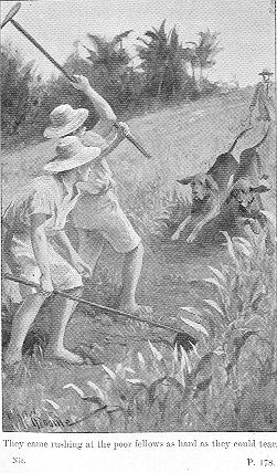 “I’m glad they escaped, poor fellows,” said Nic; “but is that scoundrel Dee with them?”