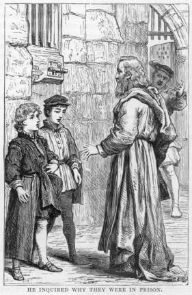 We had no other visitor after this till the next morning. We employed the time in examining our cell, to ascertain if there was any possible means of getting out. Jacob said that he had heard of men burrowing under the walls, others had got out the iron bars in the windows, or worked their way through a hole which they managed to form in the roof. But there appeared very little chance of our getting out that way. Our only hopes lay in the assistance the jailer might afford us. I cannot say that we slept very pleasantly, for our beds were composed of heaps of half-rotten straw; and though we could not find any way of getting out of our dungeon, rats and other vermin found their way in, and continued running about the floor, and frequently jumping over us during the dark hours of the night.