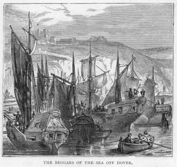 “Why, to confess the truth,” answered the man, “this morning at daybreak a strange fleet was seen coming up the river Meuse. No one could tell whence it came. Some thought it was a fleet of merchant vessels for Rotterdam: but the question was soon set at rest by my friend Peter Kopplestock, the ferryman, who, going on board one of the ships, found them to be no others than those fearful desperadoes and pirates—the Water Beggars. They sent him back to tell the magistrates that two hours would be allowed them to decide whether or not they would surrender the town, and accept the authority of De la Marck as Admiral of the Prince of Orange. That if they will do so, their lives will be spared; but if not, every man who attempts to resist will be put to the sword. Our Burgomaster is a mighty brave fellow, and so are our chief burghers, but they know very well what a desperate fellow the Admiral De la Marck is; and he has got some five or six thousand men, so Peter says, on board the fleet; and what can our citizens do to resist them? He says that he comes simply to free the land from the Tenth Penny, and to overthrow the tyranny of Duke Alva and his Spaniards. The magistrates, it seems to me, do not much like to face Admiral De la Marck, and so they have been busily employed in packing up ever since, and making their way out of the town.”