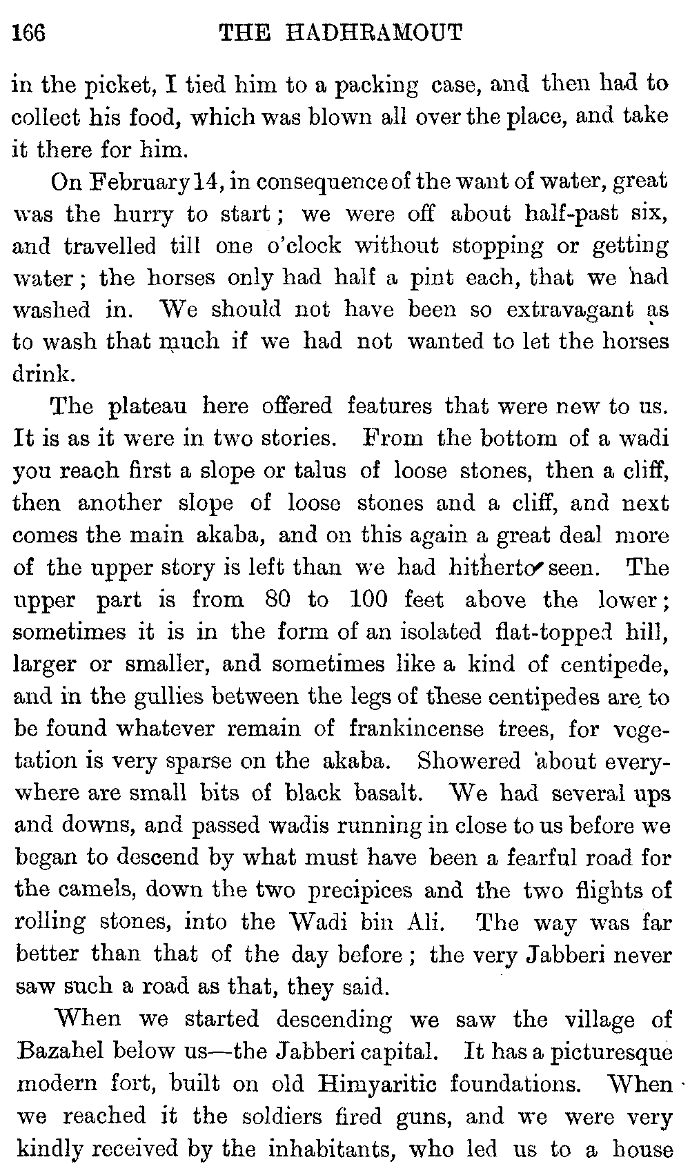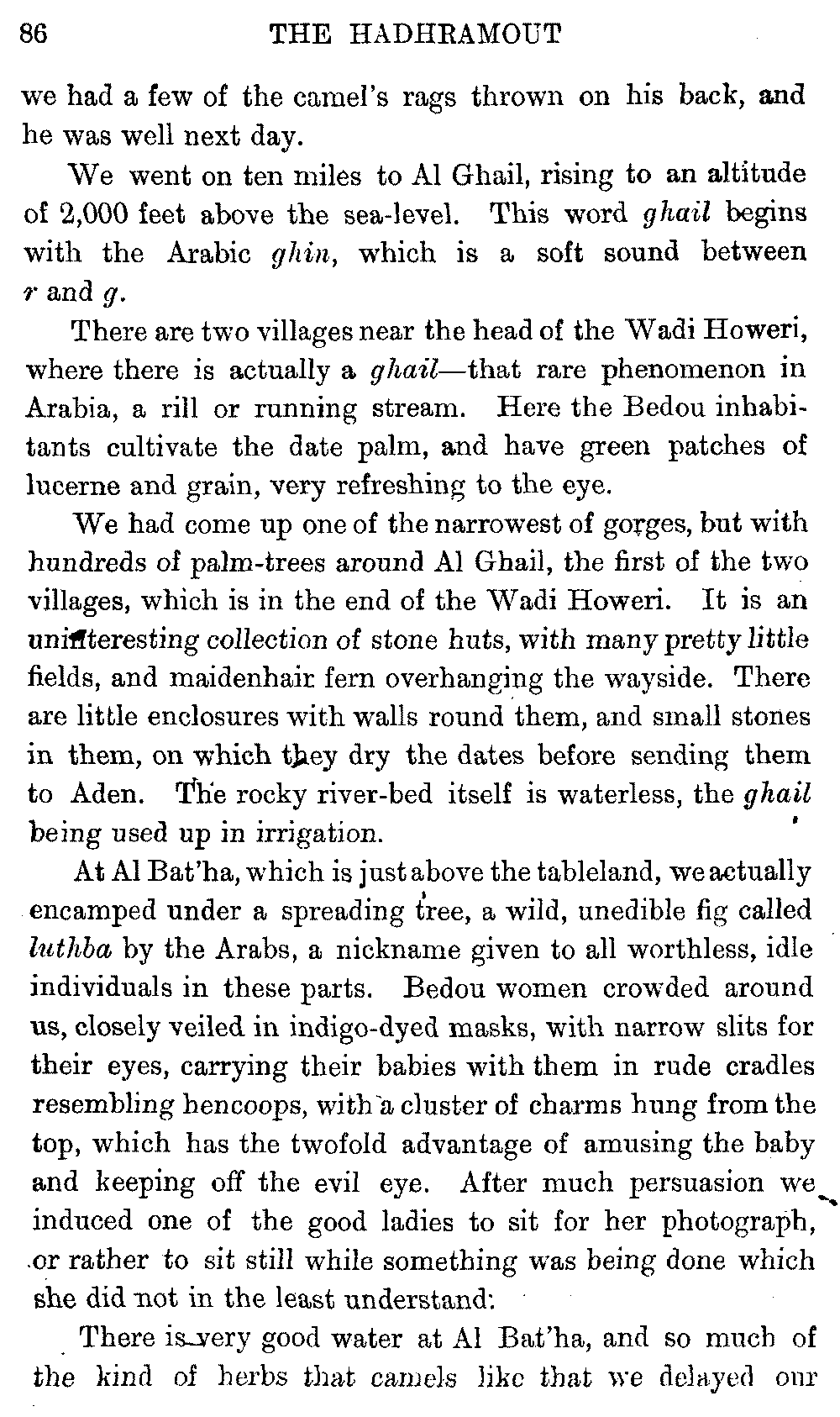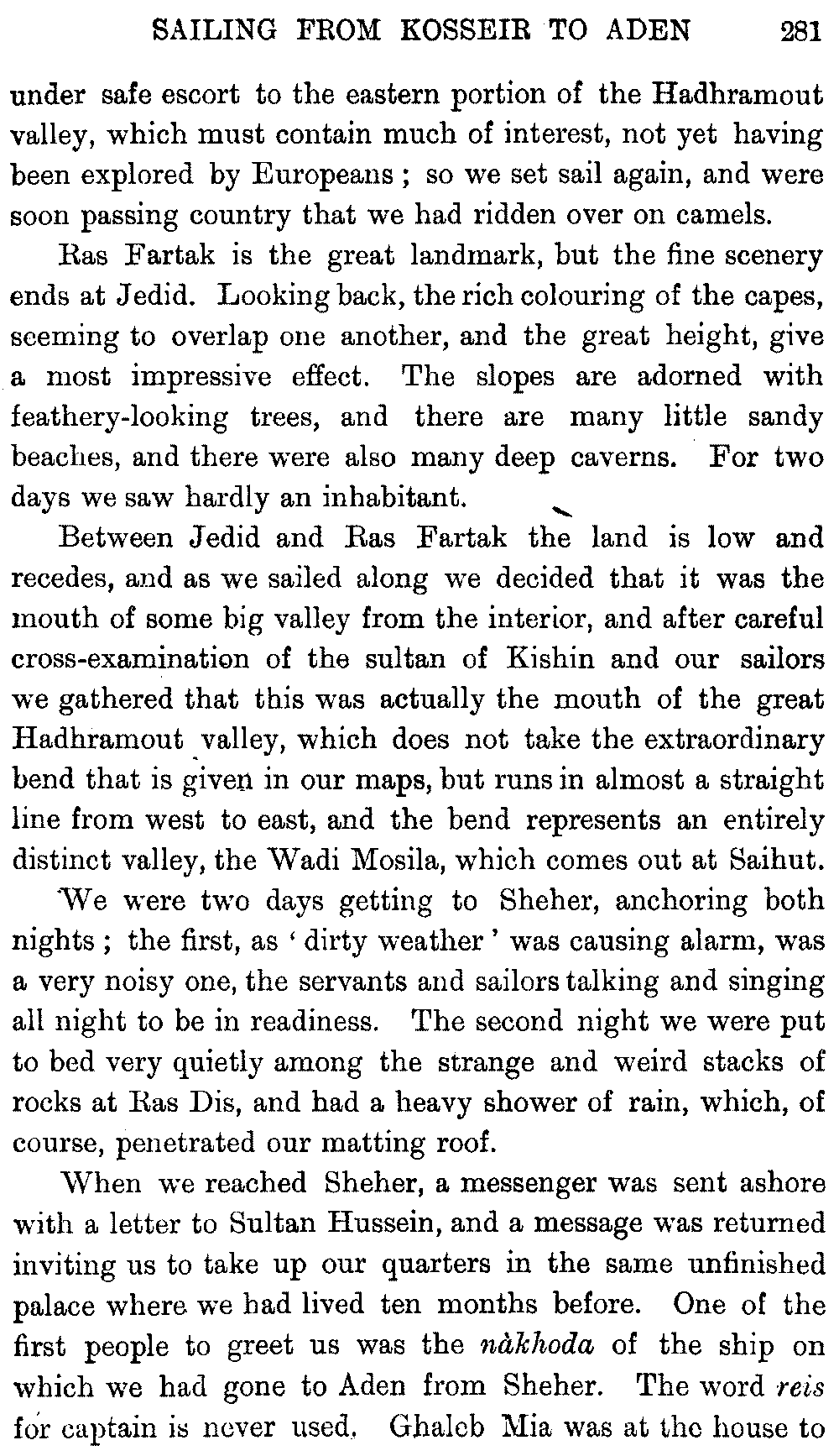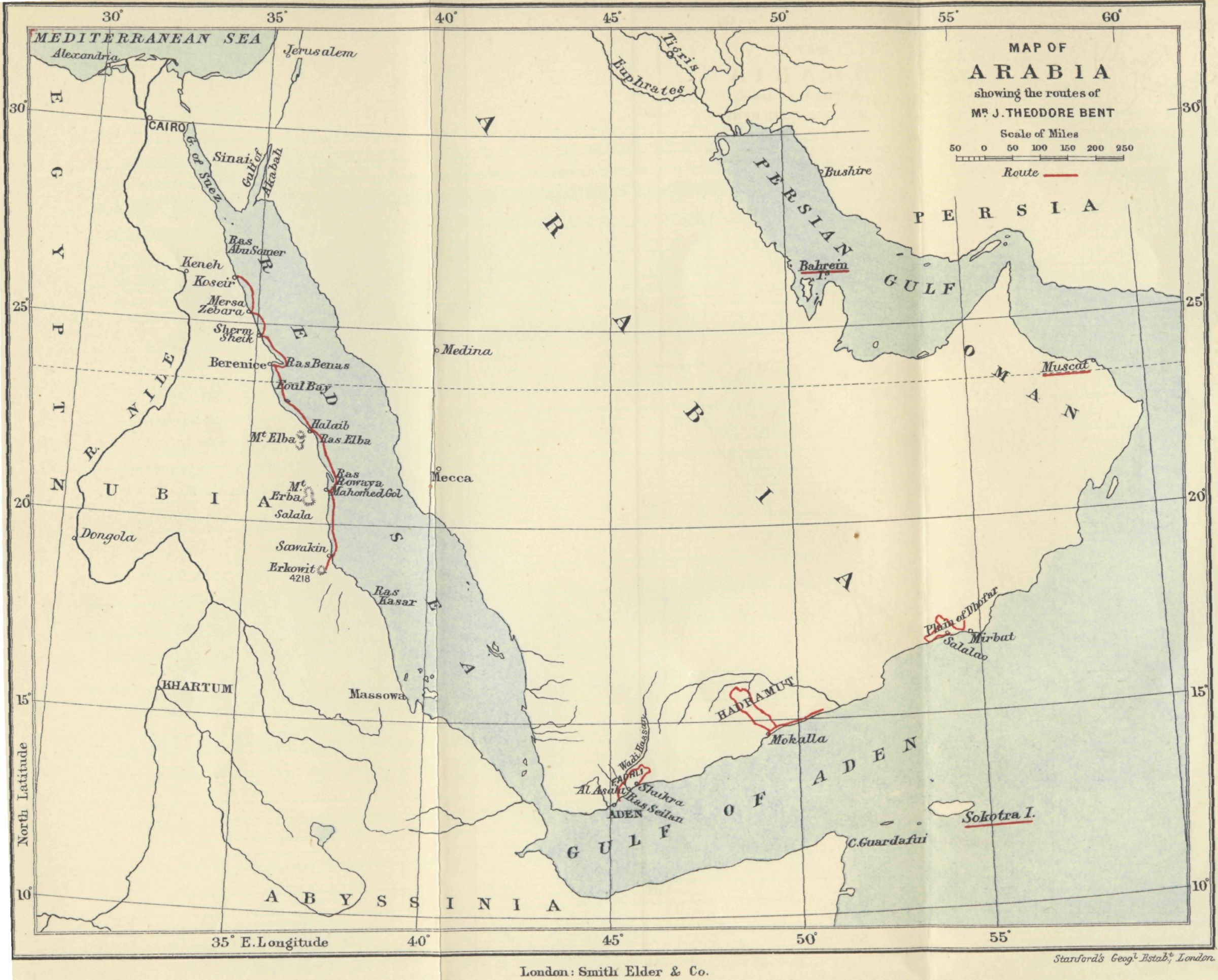 If my fellow-traveller had lived, he intended to have put together in book form such information as we had gathered about Southern Arabia. Now, as he died four days after our return from our last journey there, I have had to undertake the task myself. It has been very sad to me, but I have been helped by knowing that, however imperfect this book may be, what is written here will surely be a help to those who, by following in our footsteps, will be able to get beyond them, and to whom I so heartily wish success and a Happy Home-coming, the best wish a traveller may have. It is for their information that I have included so many things about the price of camels, the payment of soldiers and so forth, and yet even casual readers may care to know these details of explorers' daily lives.