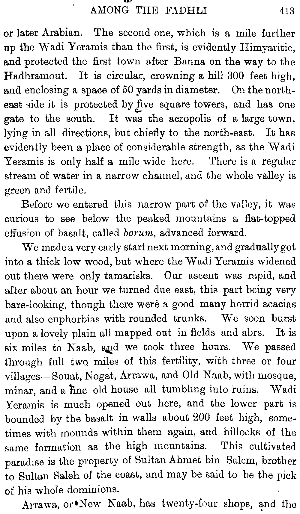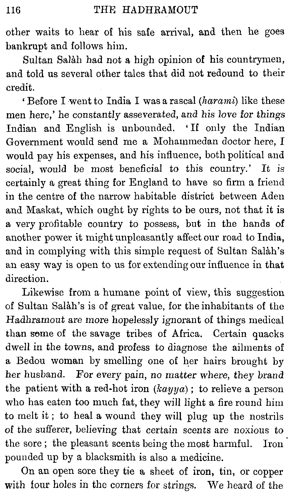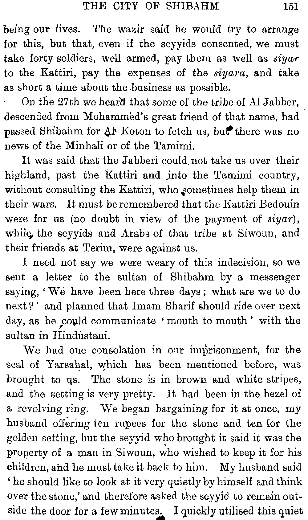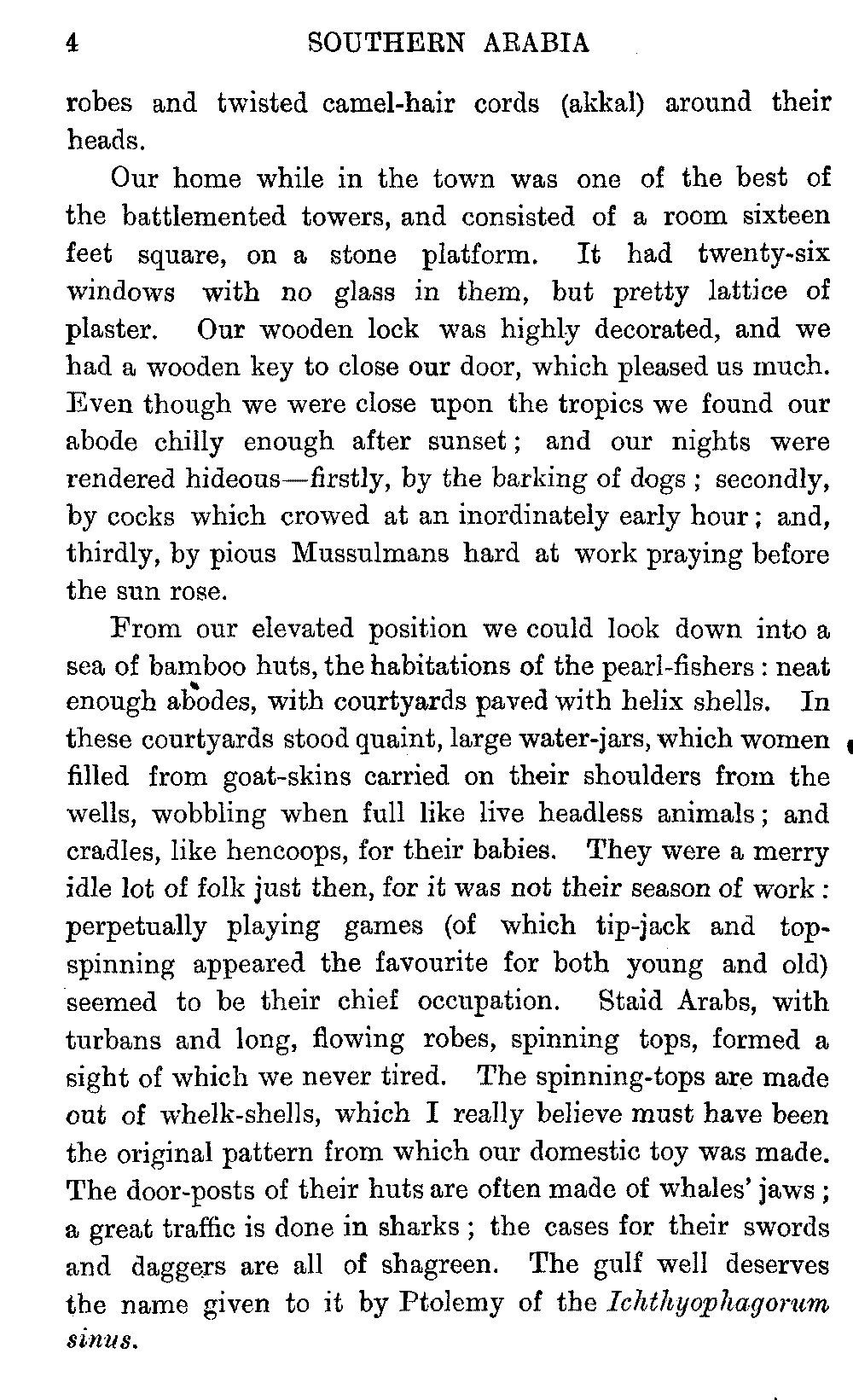If my fellow-traveller had lived, he intended to have put together in book form such information as we had gathered about Southern Arabia. Now, as he died four days after our return from our last journey there, I have had to undertake the task myself. It has been very sad to me, but I have been helped by knowing that, however imperfect this book may be, what is written here will surely be a help to those who, by following in our footsteps, will be able to get beyond them, and to whom I so heartily wish success and a Happy Home-coming, the best wish a traveller may have. It is for their information that I have included so many things about the price of camels, the payment of soldiers and so forth, and yet even casual readers may care to know these details of explorers' daily lives.