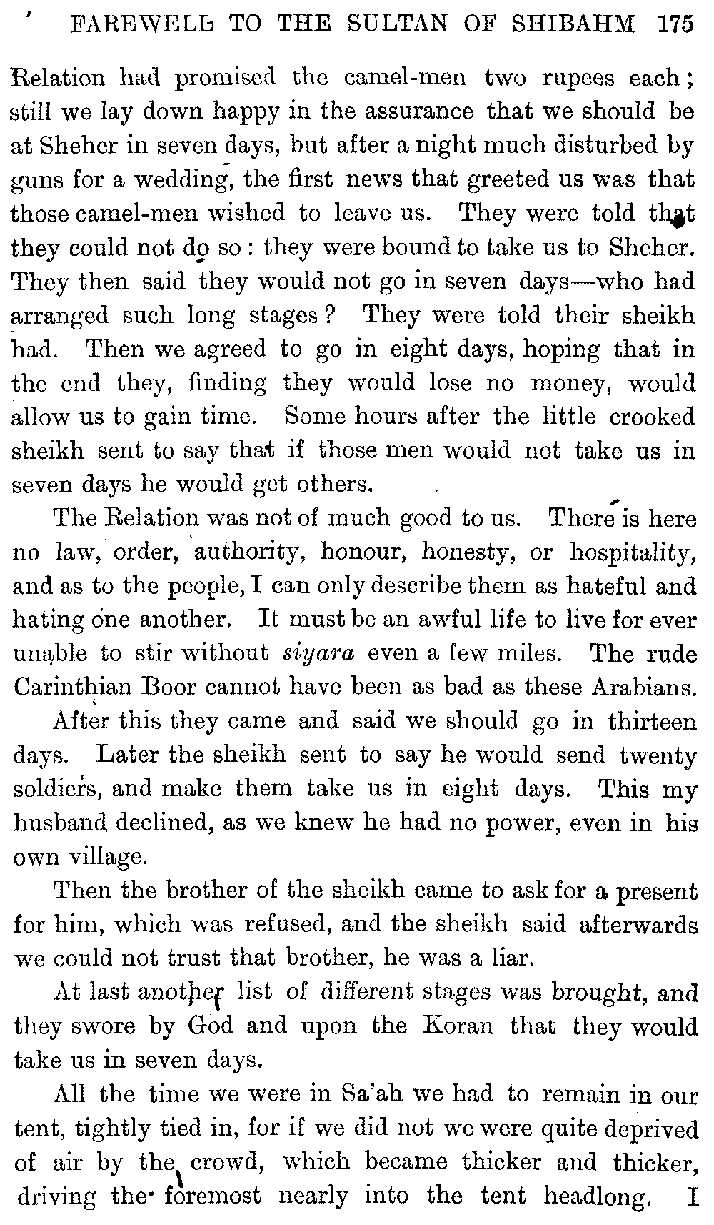I must give hearty thanks in both our names to all who helped us on in these journeys, and especially to Mr. Headlam, who has given me much assistance by going through the proofs of this book. Mr. W. C. Irvine has kindly provided the column of literary Arabic for the vocabulary.