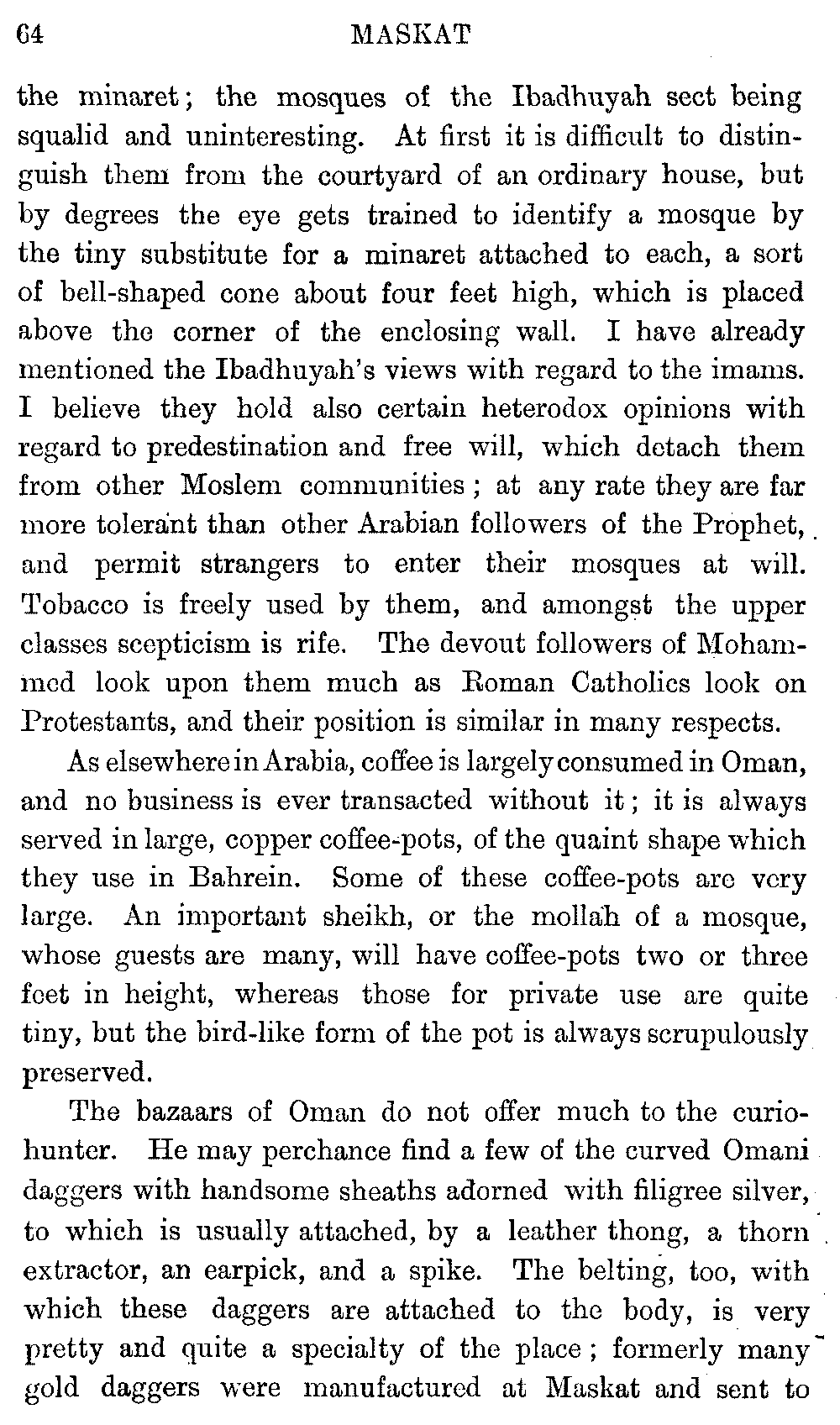 Miles, Colonel.—Report of the Administration of the Persian Gulf Residency, 1884-88. Journey through Oman and Dhakrireh. Blue Book, ccxx.