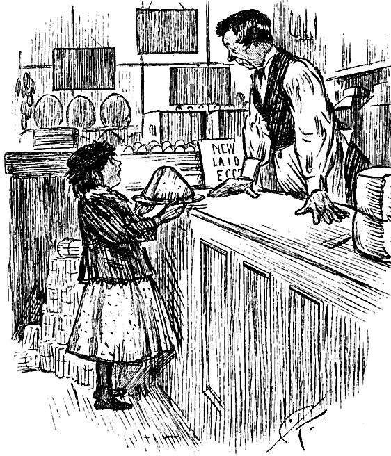 Little Girl. "Oh, Mother's sent back this piece o' Cheese, 'cause Father Says If we wants any Bait when he's a goin' a Fishin', he can dig 'em up in our Garden!"