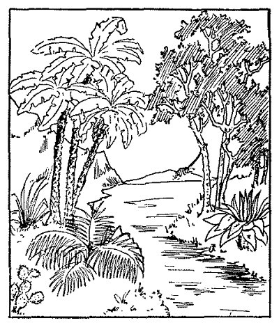 "I resolved at once to begin to make a boat large enough for us to pass over to the land we could see lying to the west and if possible to go on to the white man's country Friday told me about. It took us nearly two months to make our boat and rig her out with sails, masts, rudder, and anchor. We had to weave our sails and twist our rope. We burned out the canoe from a large fallen log. We use[Pg 142]d a great stone tied securely to the end of a strong rope for an anchor.