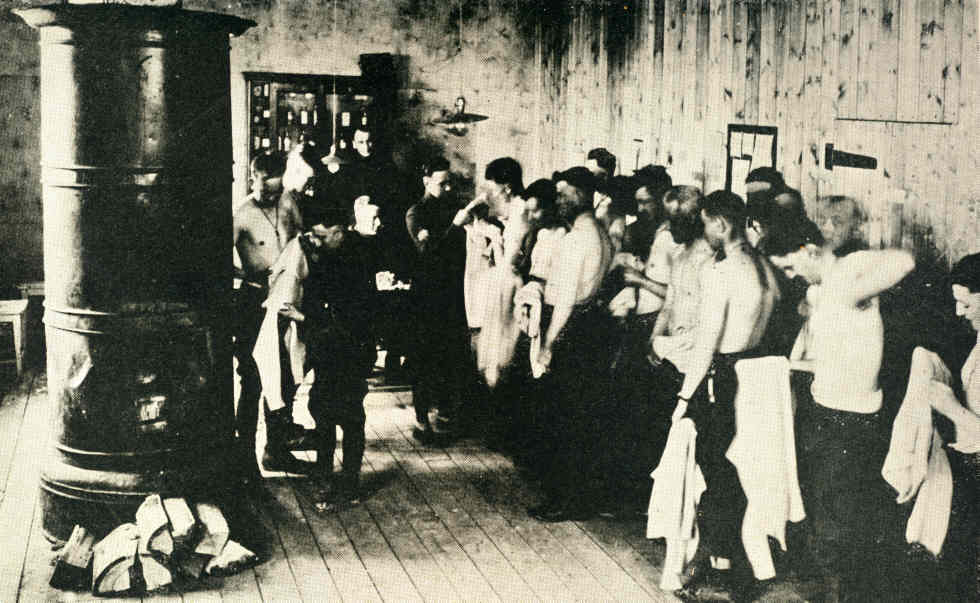 On the 6th of September they debarked in the rain at Bakaritza. About thirty men could be accommodated in the old Russian Red Cross Hospital, such as it was, dirt and all. The remainder were temporarily put into old barracks. What “flu”-weakened soldier will ever forget those double decked pine board beds, sans mattress, sans linen, sans pillows? If lucky, a man had two blankets. He could not take off his clothes. Death stalked gauntly through and many a man died with his boots on in bed. The glory of dying in France to lie under a field of poppies had come to this drear mystery of dying in Russia under a dread disease in a strange and unlovely place. Nearly a hundred of them died and the wonder is that more men did not die. What stamina and courage the American soldier showed, to recover in those first dreadful weeks!