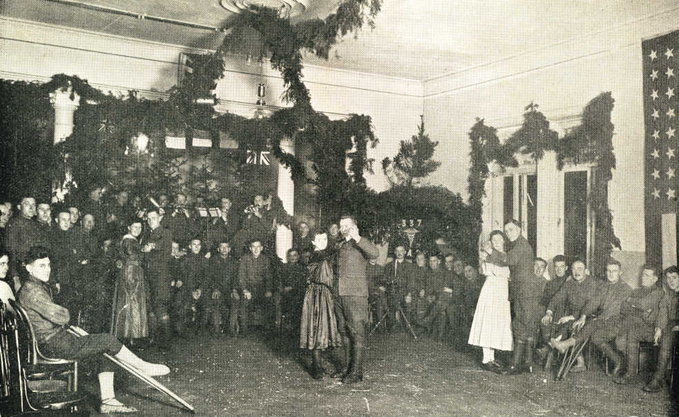 At last Major Longley took the bull by the horns and accepted the aid of the Red Cross and selected and trained a personnel to run the hospital from among the officers and men who had been wounded and were recovered or partially recovered and were not fit for further heavy duty on the fighting line. He had the valuable assistance also of the two American Red Cross nurses, Miss Foerster and Miss Gosling, the former later being one of five American women who, for services in the World War, were awarded the Florence Nightingale Medal.
