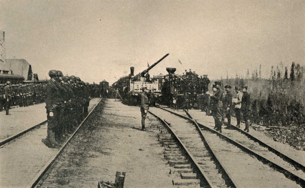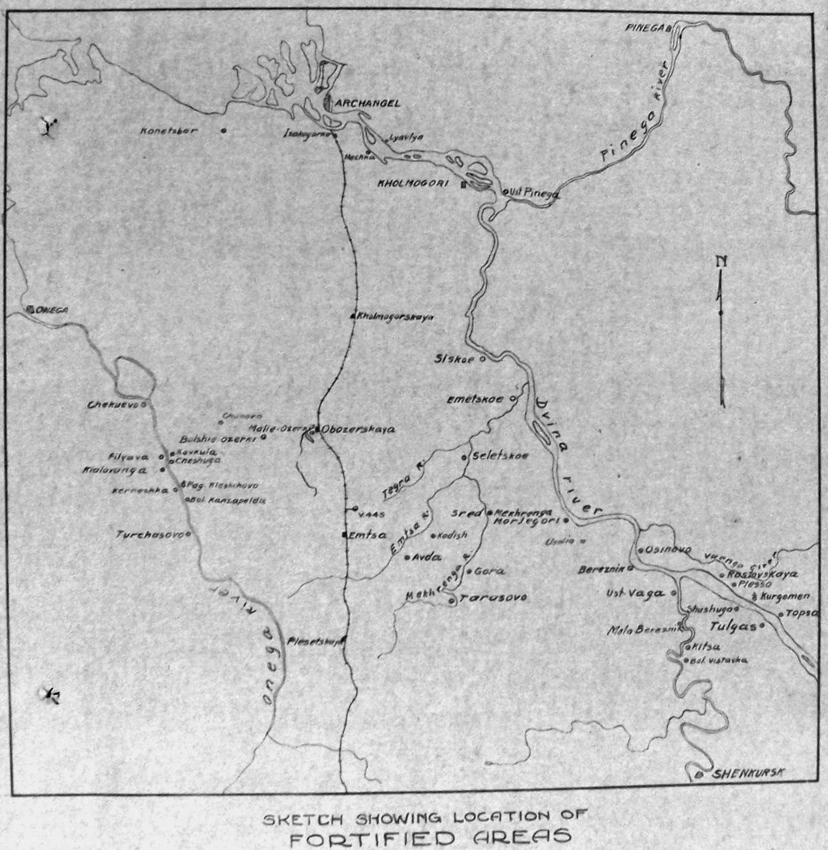 In the rainy fall season by their dash and valor they were to expel the Red Guards from the cities and villages of the state of Archangel, pursuing the enemy vigorously up the Dvina, the Vaga, the Onega and the Pinega Rivers, and up the Archangel-Vologda Railway and the Kodish-Plesetskaya-Petrograd state highway. They were to plant their entrenched outposts in a great irregular horseshoe line, one cork at Chekuevo, the toe at Ust-Padenga, the other cork of the shoe at Karpagorskaya. They were to run out from the city of Archangel long, long lines of communication, spread wide like the fingers of a great hand that sought seemingly to cover as much of North Russia as possible with Allied military protection.