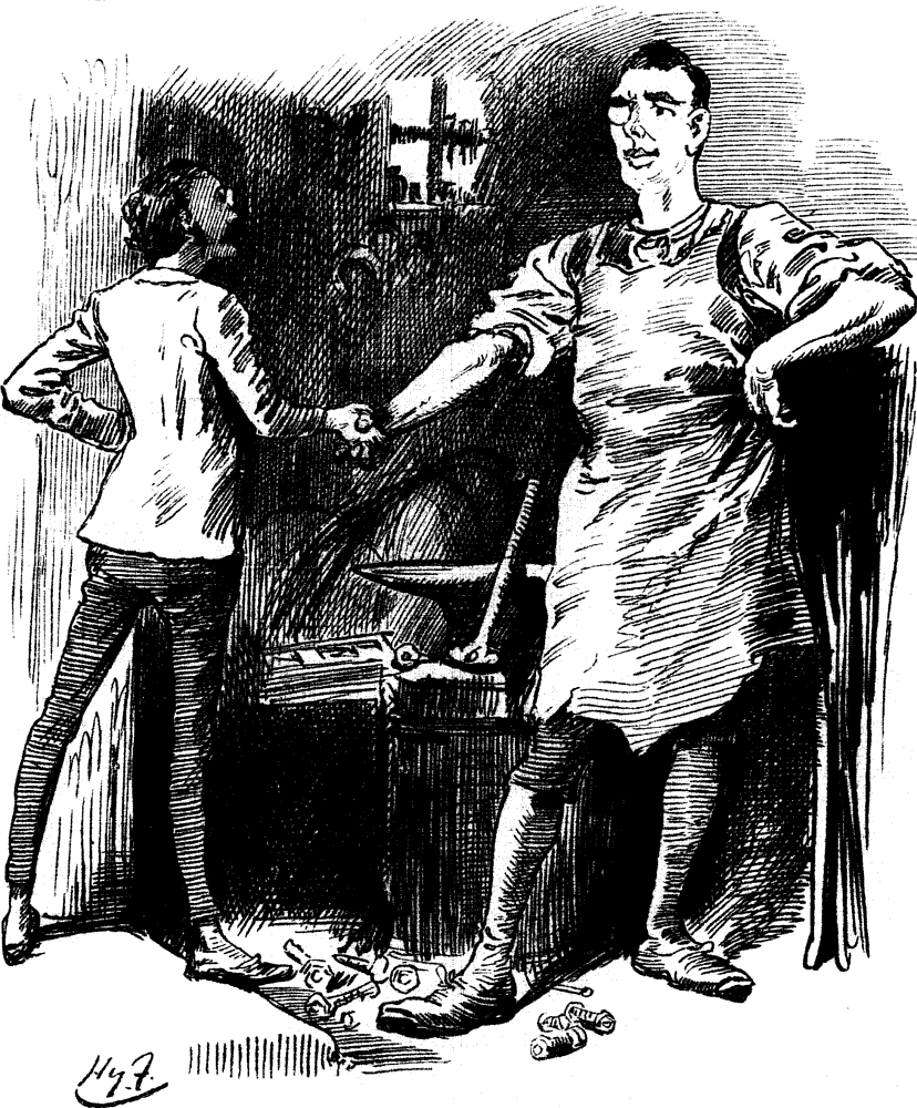 Business done.—Got into Committee on Navy Estimates. In the Lobby sort of rehearsal of new Battle of Boyne. The other night Saunderson said something disrespectful of Irish Members. Willie Redmond, from his proud position among nobility and gentry above Gangway, called out, "You wouldn't say that in the Lobby." "Say it anywhere," responded the Colonel, ever ready to oblige.
