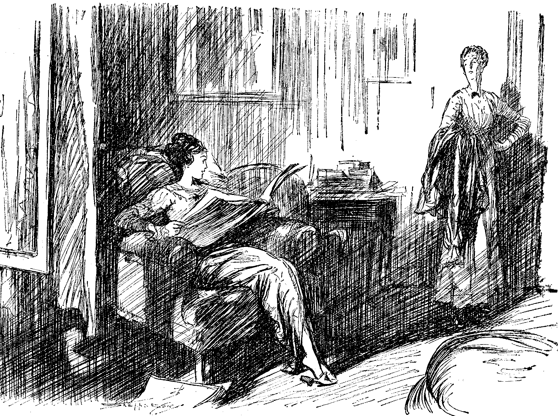 "Her hands dropped to her side. She toyed with the little locket on the gold chain at her throat. 'I am capable of anything!' she said."—"Daily Mirror" Serial.